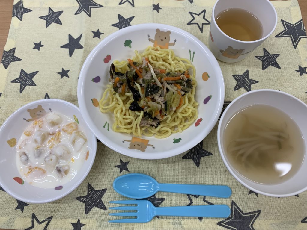献立:あんかけ焼きそば、中華スープ、フルーツヨーグルト
